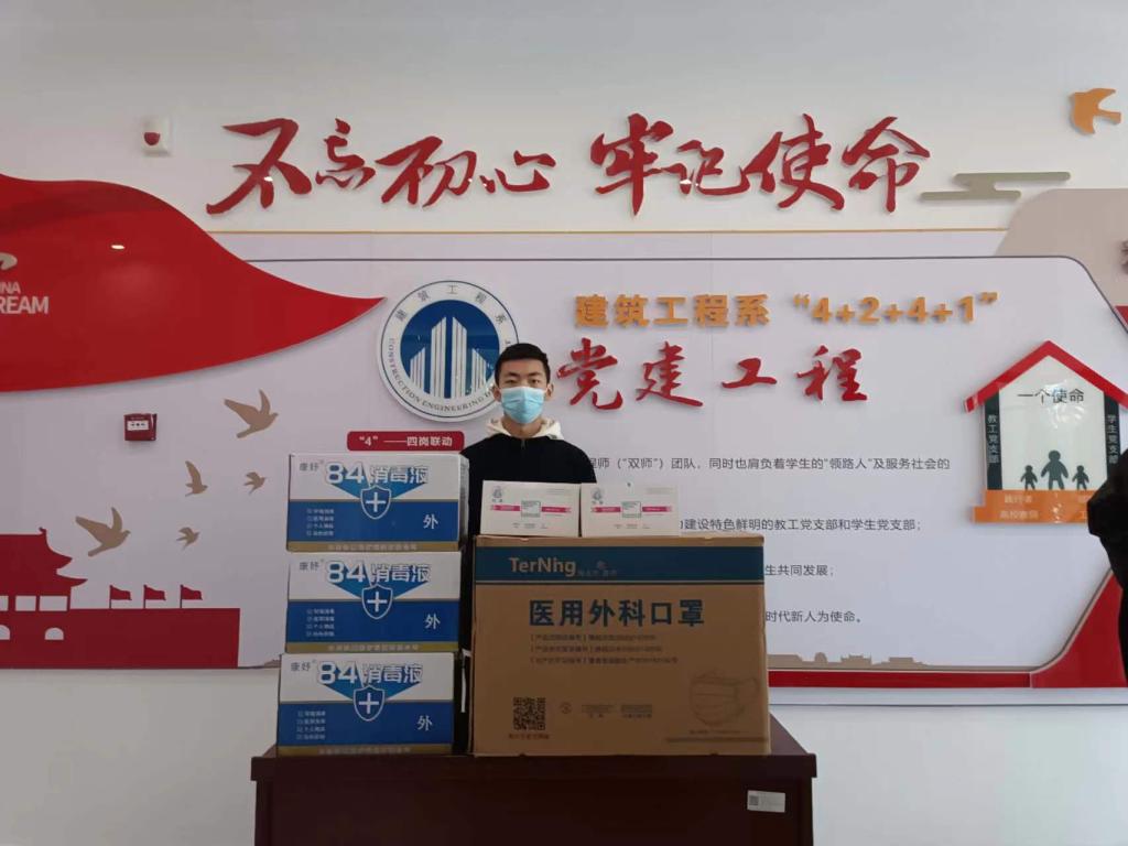建筑工程系刘胜朝同学向学校捐赠防疫物资