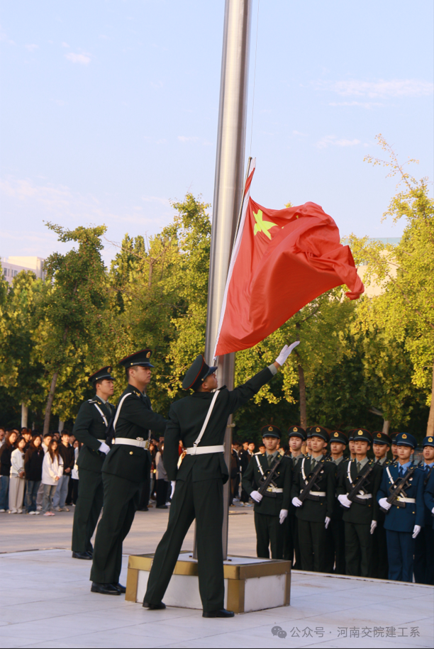 建筑工程系举行以“喜迎国庆七十五周年, 劳动实践点亮成长之路”为主题的升国旗仪式。为深入贯彻落实党的二十大精神,庆祝新中国成立75周年,提升同学们的爱国情怀,责任担当与劳动实践意识,激励全体师生在全面建设社会主义现代化国家新征程中勇担先锋者,2024年9月23日早上7:00分,建筑工程系全体师生齐聚学校图书馆门前,举行以“喜迎国庆七十五周年 劳动实践点亮成长之路”为主题的升旗仪式。