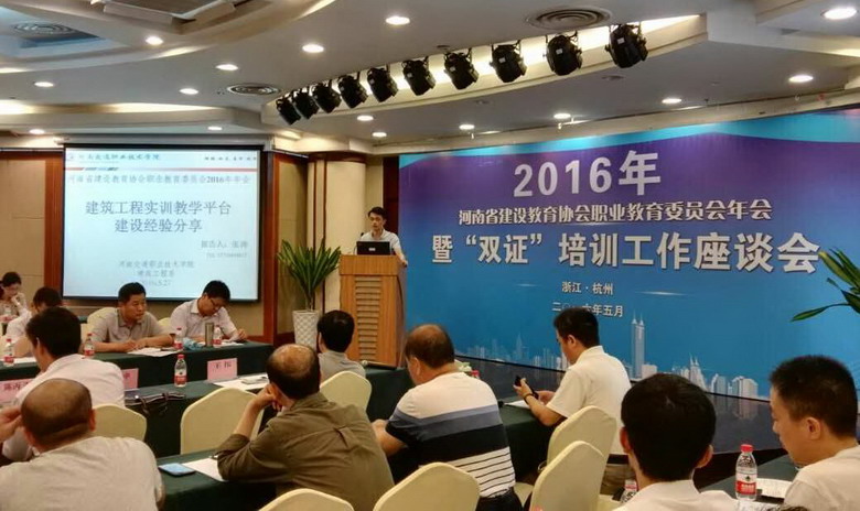 河南省建设教育协会职业教育委员会2016年年会于5月27日在杭州召开。中国建设教育协会副秘书长胡晓光、浙江省住建厅人教处处长唐晓青、河南省建设教育协会常务副会长陈永堂、浙江建设职业技术学院副院长汤宗礼,河南工业职业技术学院院长李生平、河南建筑职业技术学院院长陈丙义、河南省建设教育协会副会长兼秘书长崔恩杰等相关领导出席会议。来自全省40余所职业院校,100余位教师参加了会议。