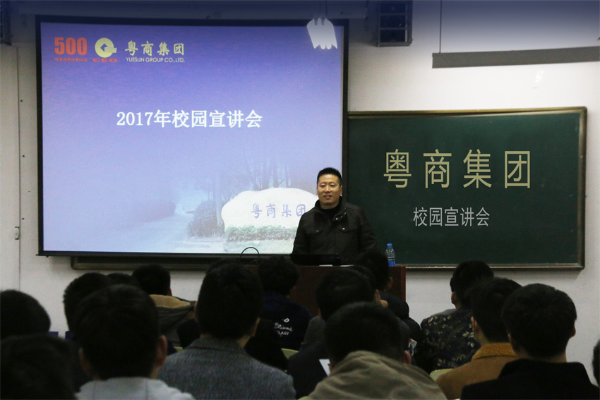 11月21日下午,寒风凛冽,但建筑工程系3B201却一片火热景象,这里正在举行粤商集团校园宣讲会。集团公司人力资源部经理张小祥出席了宣讲会。