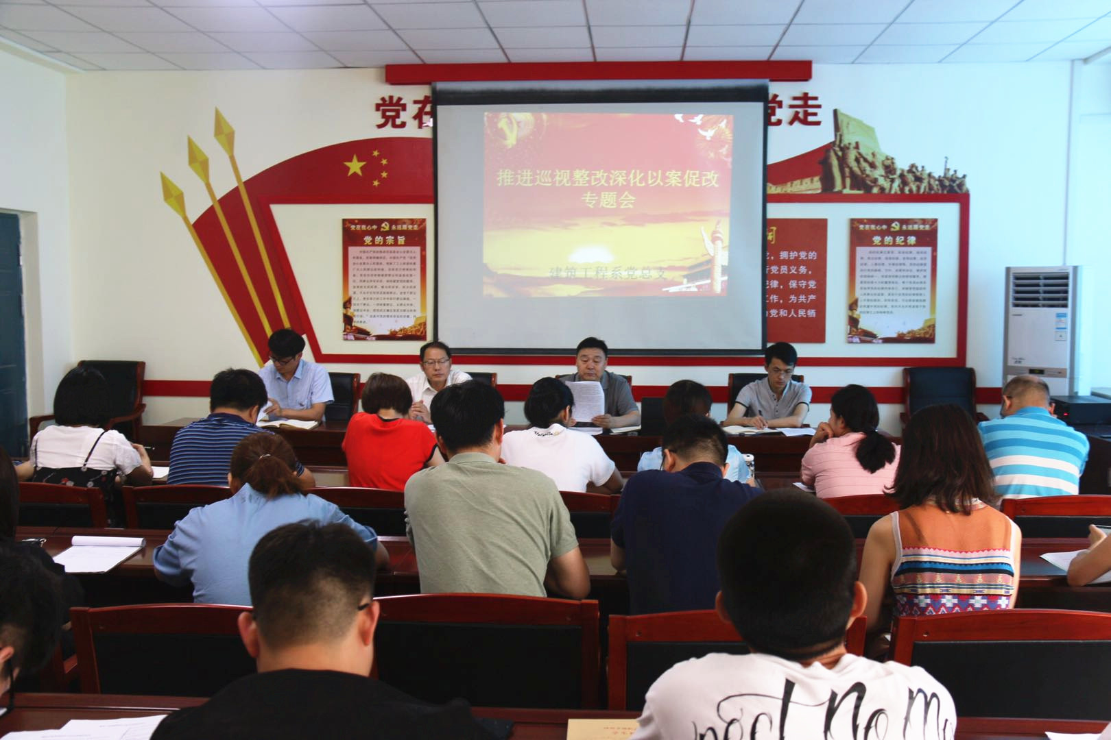 6月19日下午,建筑工程系党总支在党员之家召开了推进巡视整改深化以案促改专题会议,建筑工程系全体教职工党员及学生党员参加了此次会议,会议由建筑工程系党总支书记徐前进主持。