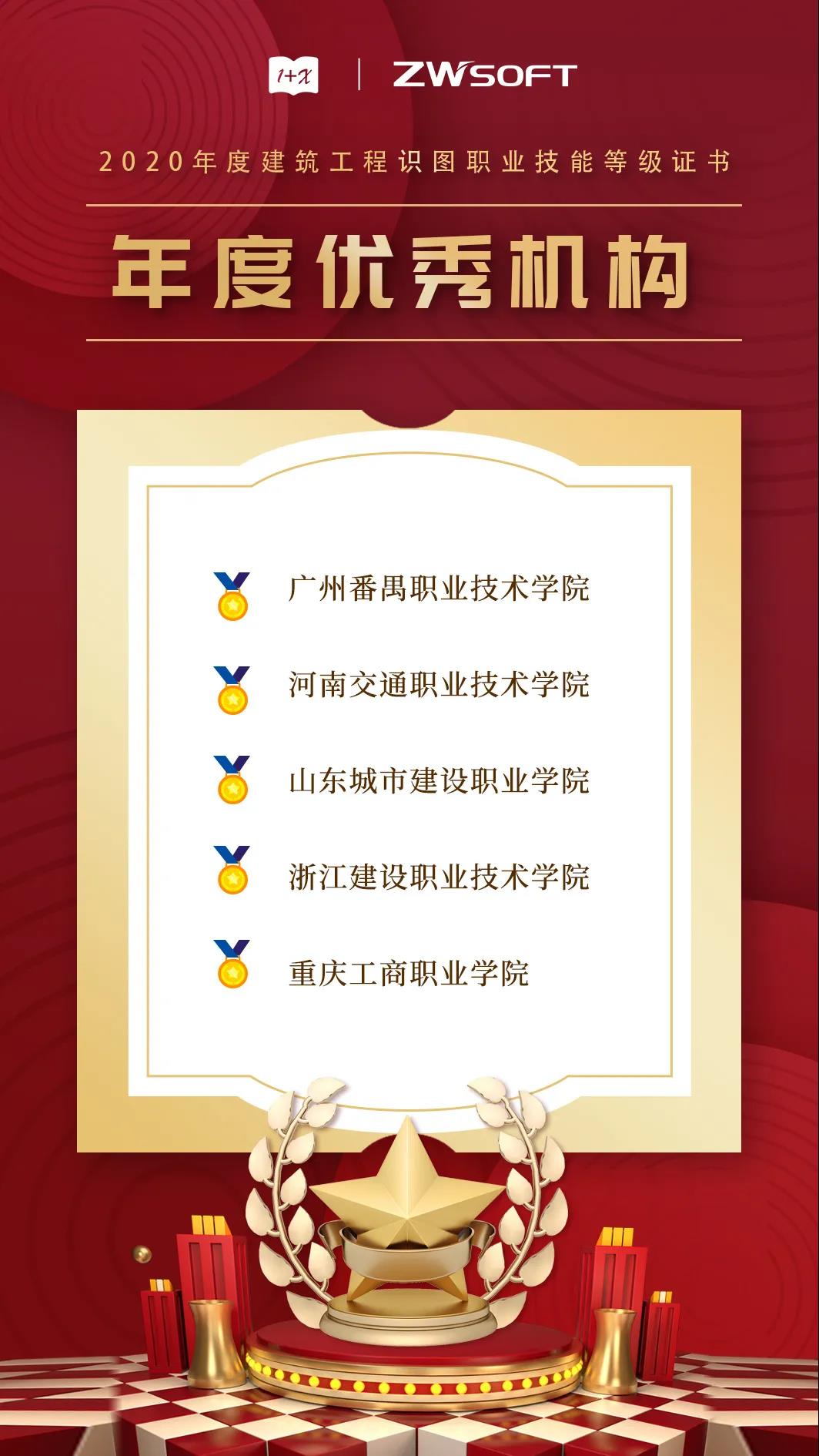 2020年,建筑工程识图职业技能等级证书获得了广泛的关注和支持,其中试点院校792所,考核站点226所,参与试点实施工作5千余人。为鼓励先进,树立榜样,广州中望龙腾软件股份有限公司特对区域内试点工作牵头单位,全年承接多次师资培训、研讨会等区域性活动,为证书试点工作影响力提升做出突出贡献的单位和个人实施表彰。河南交通职业技术学院荣获2020年度建筑工程识图职业技能等级证书年度优秀机构称号。