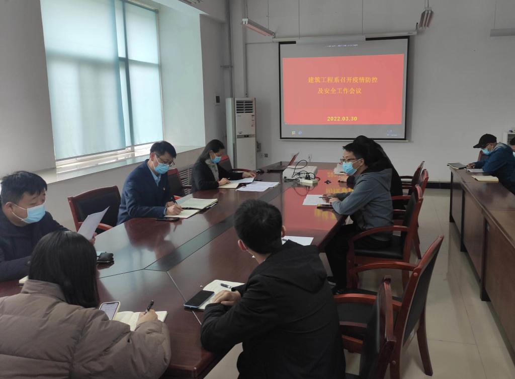 3月30日,建筑工程系组织全体教职工,采用线上+线下结合的形式召开疫情防控及安全工作会议,线下会议在致用楼会议室进行,会议由系主任王永主持。