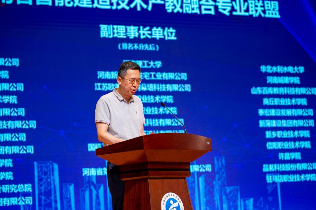 大会举行了河南省智能建造技术产教融合专业联盟正式成立启动仪式。崔恩杰宣布经联盟预备会议通过的理事长单位、副理事长单位、理事单位名单,获得会议代表一致通过。