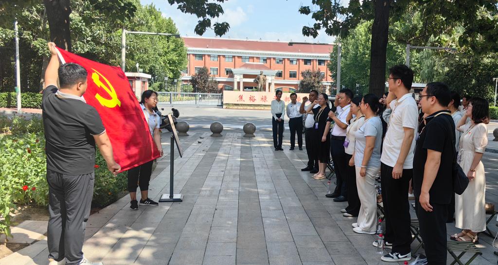 随后,党员们参观了四面红旗馆、兰考县展览馆和焦桐广场,在焦裕禄同志亲手种下的泡桐树前,面对鲜红的党旗重温入党誓词,齐声诵读习近平总书记写下的《念奴娇•追思焦裕禄》。在焦裕禄纪念园,大家面向焦裕禄烈士纪念碑庄重鞠躬行礼,深切缅怀焦裕禄同志的光辉事迹,追思焦裕禄同志的崇高风范。