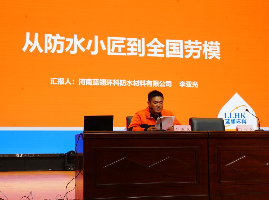 李亚光以《从防水小匠到全国劳模》为题,分享了自己以“毫米级”标准要求,带领团队以“零质量隐患、零安全事故”的实绩为每一座建筑筑牢了“防水生命线”,讲述了自己从防水学徒到行业标杆的奋斗历程。