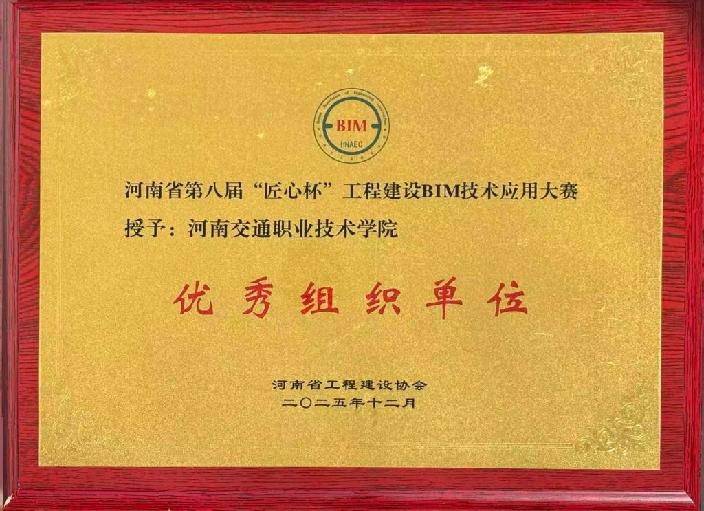 大会对河南省第八届“匠心杯”工程建设BIM大赛获奖者及单位进行表彰。学校在BIM技术应用上的教学成果得到充分肯定,由建筑工程系选送的参赛作品凭借扎实的技术应用能力,在众多参赛作品中脱颖而出,斩获一等奖1项、二等奖2项,学校荣膺优秀组织奖。