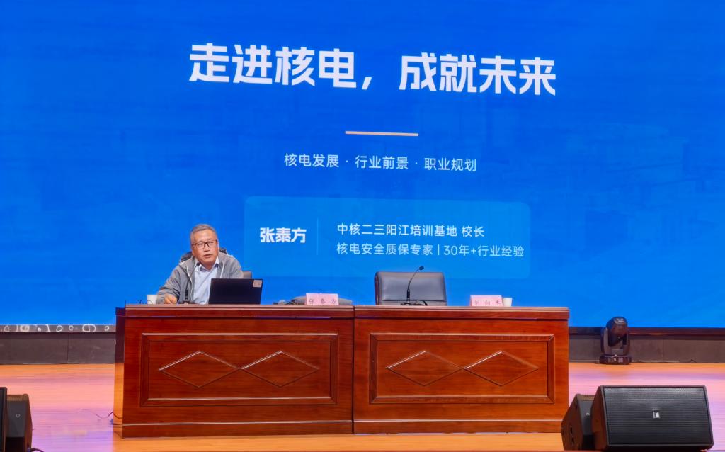 张泰方在讲座中对公众常见的核电认知误区进行科学纠偏,帮助学生以客观、专业的视角重新认识核电产业,并全面梳理全球核电发展趋势,重点解读了我国核电四代技术的突破性进展,结合经典案例,阐释国家核电“安全第一、质量至上”的发展理念与核心准则,深化师生对核电安全的深度认知。张泰方还围绕国家政策、市场需求、产业链布局等方面,详细介绍了核电上下游产业的广阔空间,明确了沿海、内陆核电项目的地域布局与人才缺口;梳理了与机电、电气、质检、安全技术、焊接等岗位适配的专业清单;分析了岗位晋升路径,让学子们清晰看到自身专业与核电行业的对接方向。