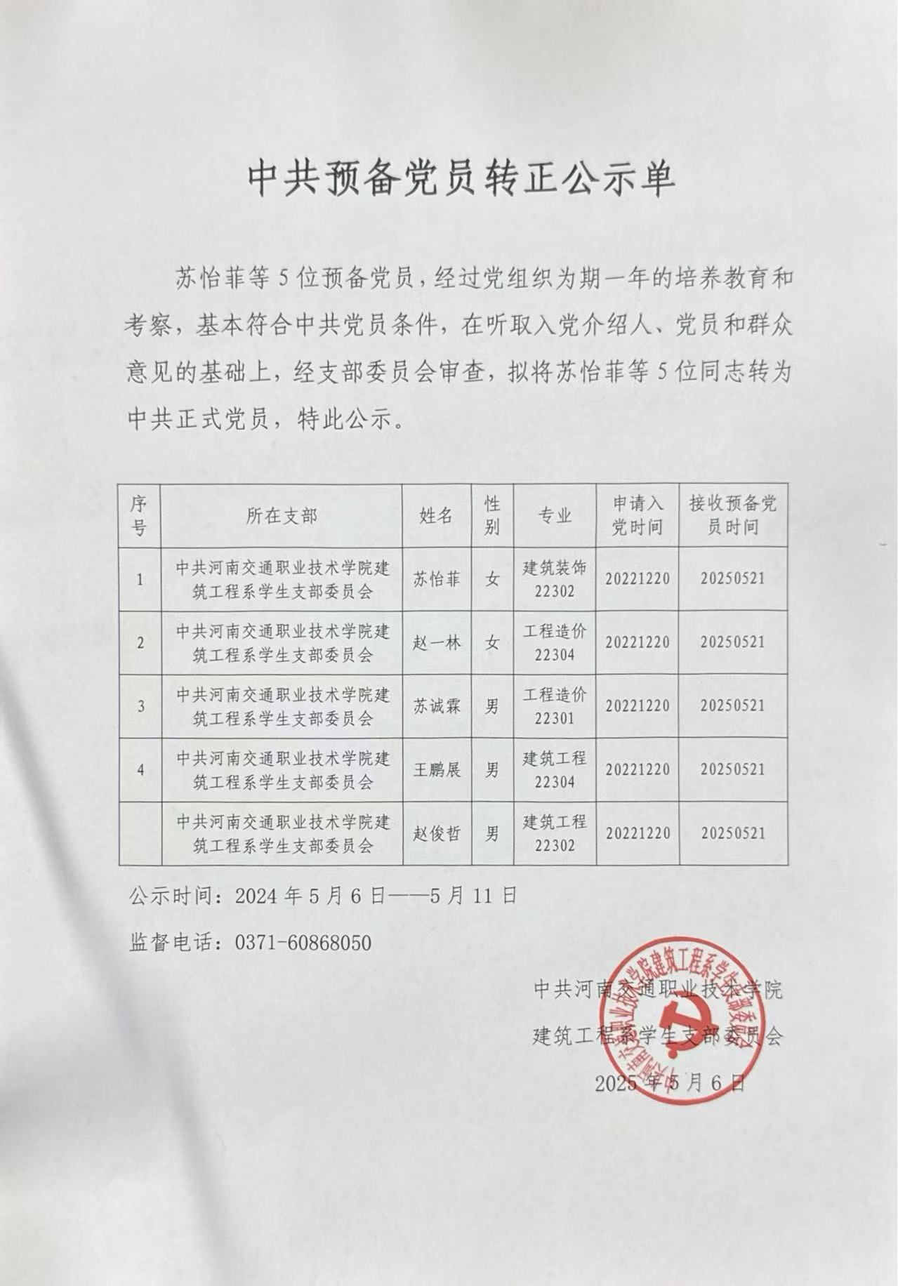 关于预备党员苏怡菲等5位同志拟转正的公示