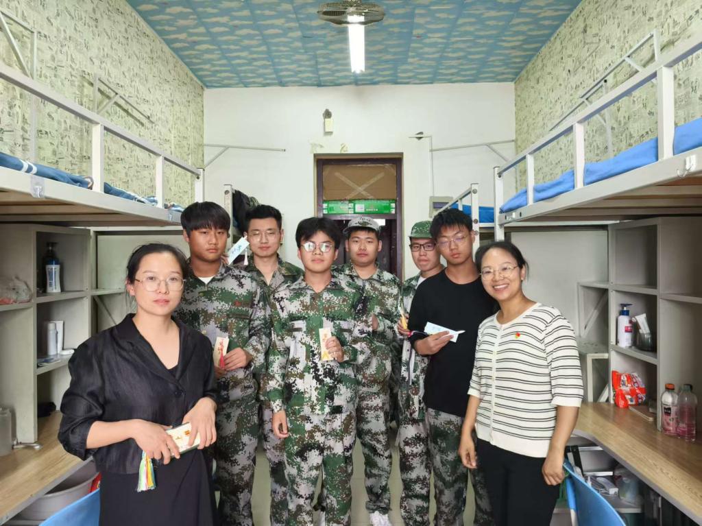 活动中,党总支首先在致用楼3A216会议室为同志们介绍了活动目的、流程、注意事项及分组情况。随后,教师党员们带着系部精心准备的礼品——书签和刻有每位学生名字的笔,走进每一间宿舍,为入学新生送上了最诚挚的祝福,鼓励他们珍惜大学时光,勤奋学习、积极进取,用手中的笔,记录下成长的点滴,用知识的力量铸就辉煌。交流中,教师们认真了解新生的军训内容和对新环境的适应情况,并围绕专业学习、未来规划、行业发展等方面问题为学生答疑解惑。